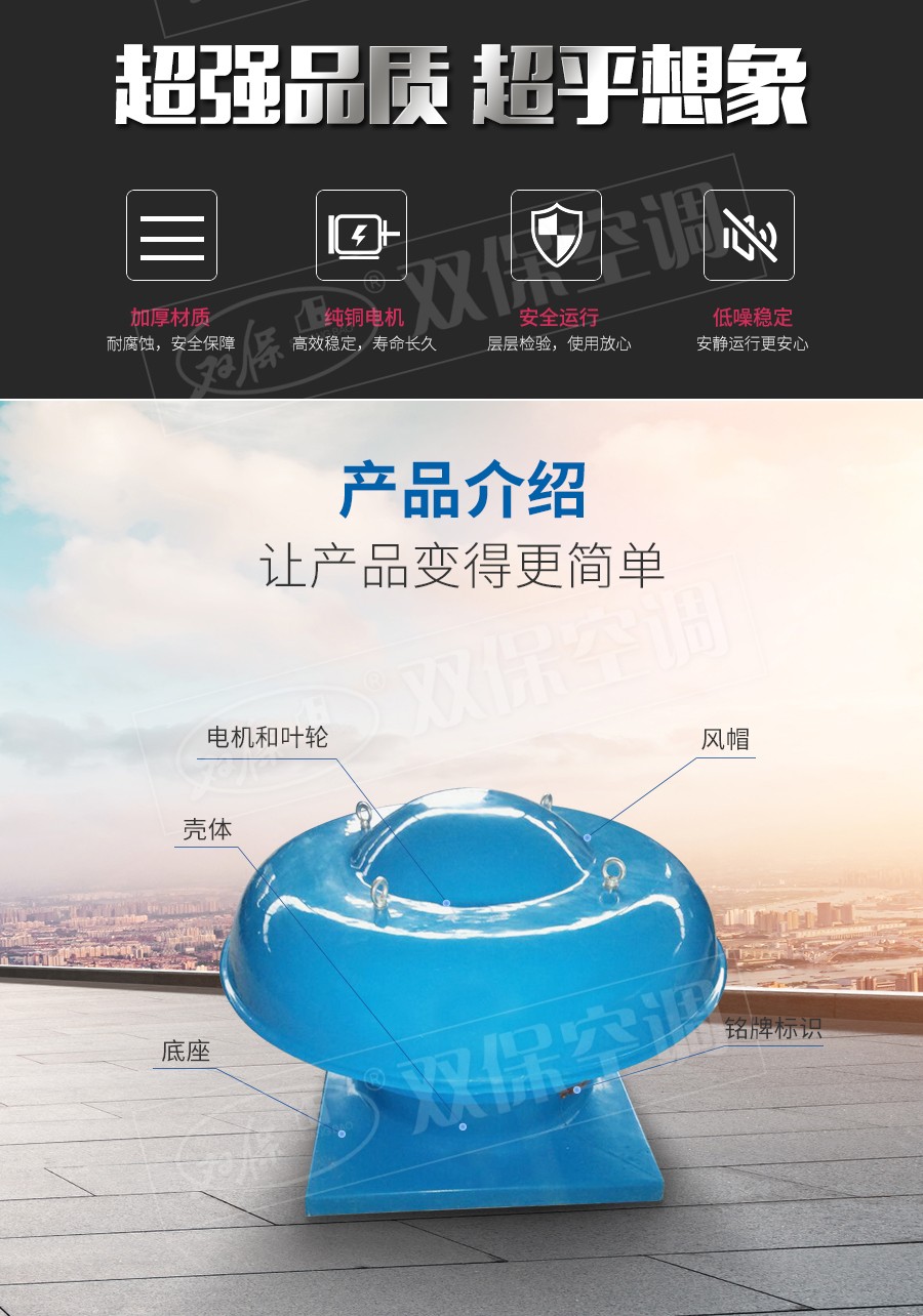 【產(chǎn)品名稱】屋頂風(fēng)機(jī)                   【生產(chǎn)廠家】江蘇雙保空調(diào)有限公司
