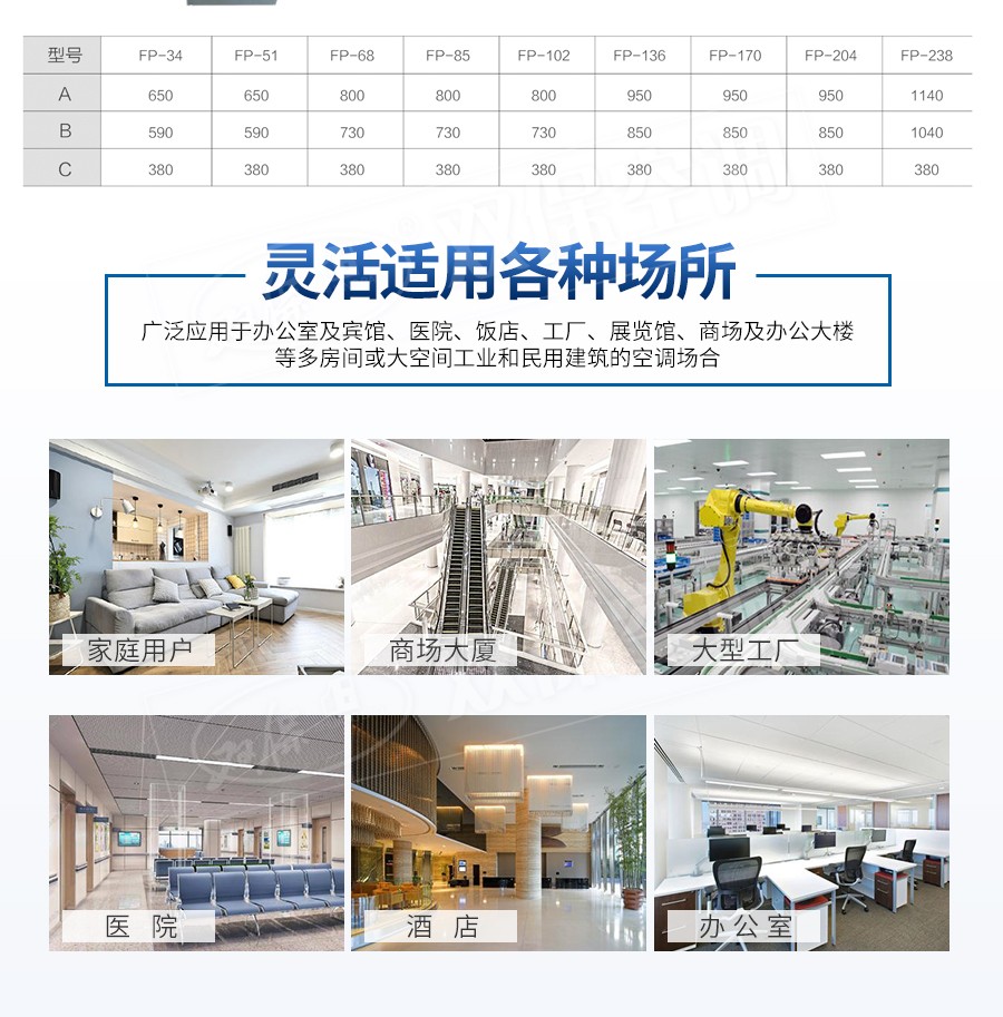 江蘇雙??照{有限公司—卡式明裝風機盤管是中央空調理想的末端產品,其工作原理是機組內不斷的再循環所在房間或室外的空氣,使空氣通過冷水(熱水)盤管后被冷卻(加熱),以保持房間溫度的恒定。外形美觀,與新風機組配套后廣泛應用于賓館、醫院、辦公用房、高級會議廳、展覽廳等低噪聲場所。